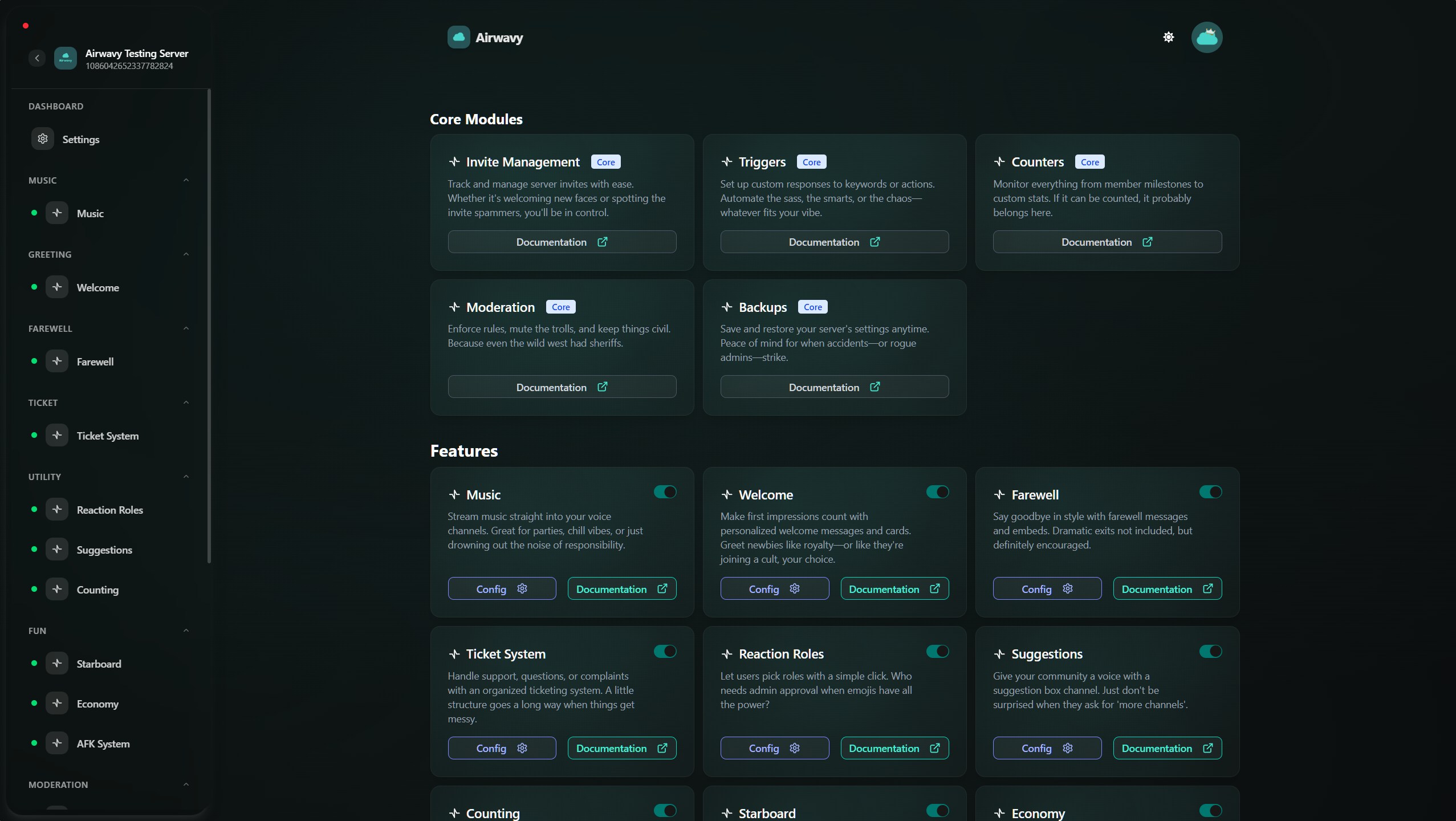 Use commands or the dashboard to configure Airwavy to your server's vibe.